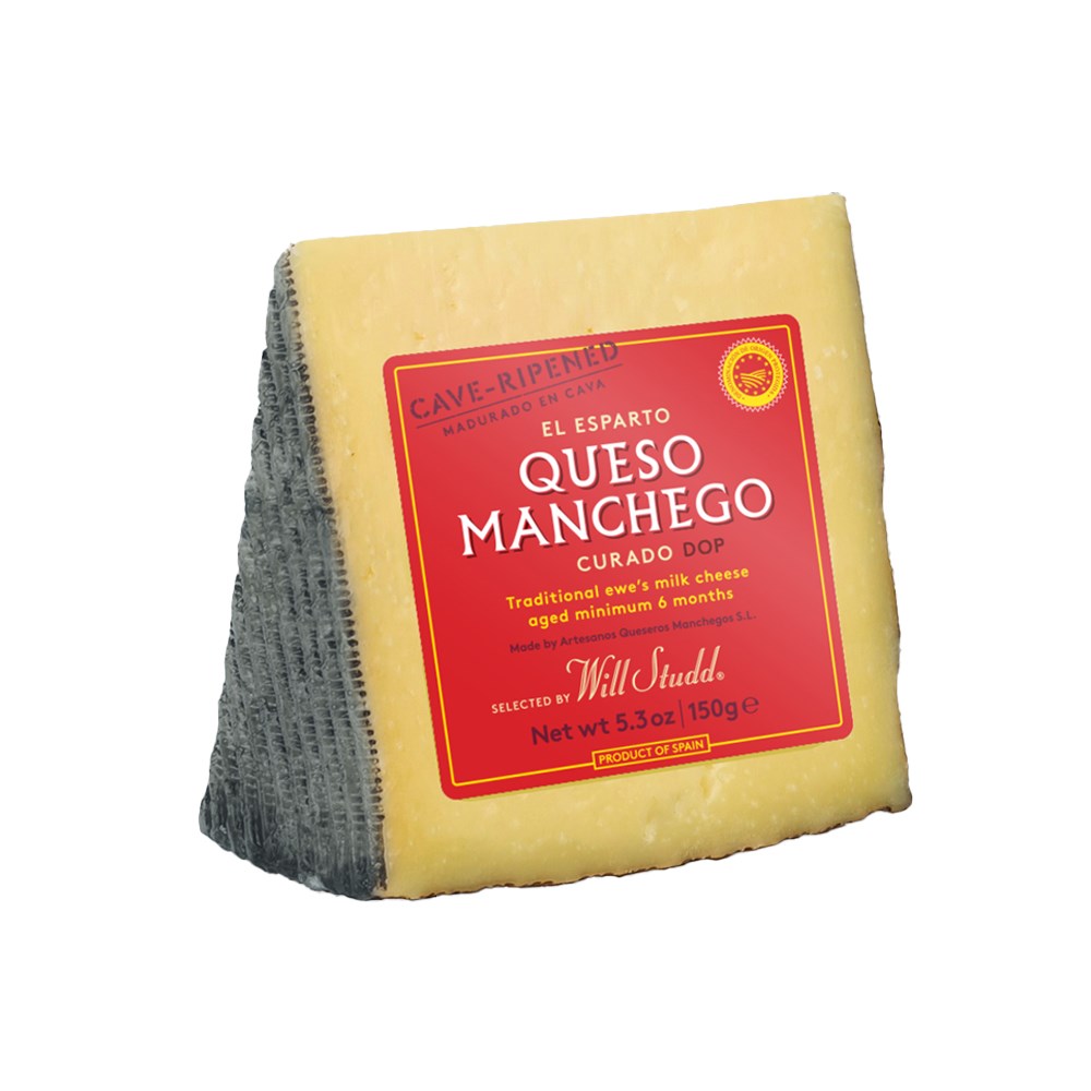 A traditional La Mancha cheese made from premium ewe’s milk, offering a sweet, milky flavour and delicate herb-infused aroma far removed from industrial varieties. Wrapped in its namesake esparto grass mould and coated in natural charcoal, it is aged for six months in underground stone caves, where airflow from herb-filled greenhouses subtly enhances its character. The result is a moist, ivory interior with a rich buttery finish and lingering notes of caramel and almonds.