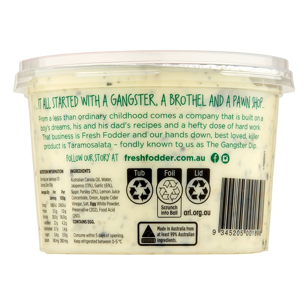 This dip is creamy and smooth, blending together a sweet and spicy combination of pickled jalapenos, punchy garlic and fresh parsley and zesty lemon.