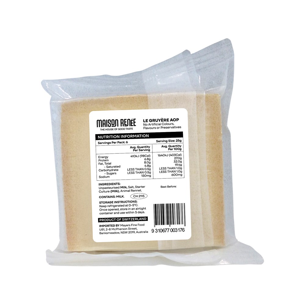 Expertly crafted with traditional methods in western Switzerland. Nutty, slightly sweet and salty taste. Smooth, velvety texture, perfect for fondue, pasta and toasties.