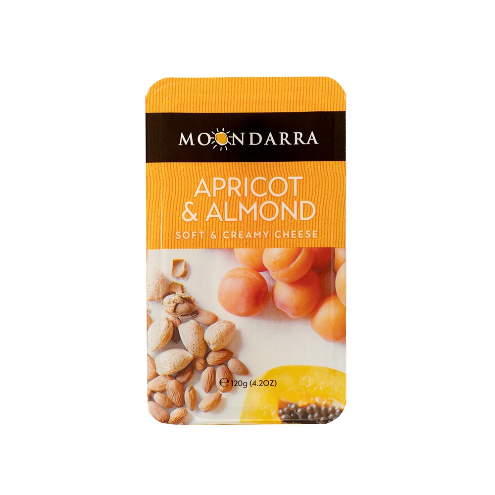 Indulge in the perfect balance of sweet and nutty with Moondarra Apricot & Almond Cream Cheese. Each bite features a generous helping of luscious apricot fruit encased in smooth, velvety cream cheese, all surrounded by crunchy, toasted almonds.