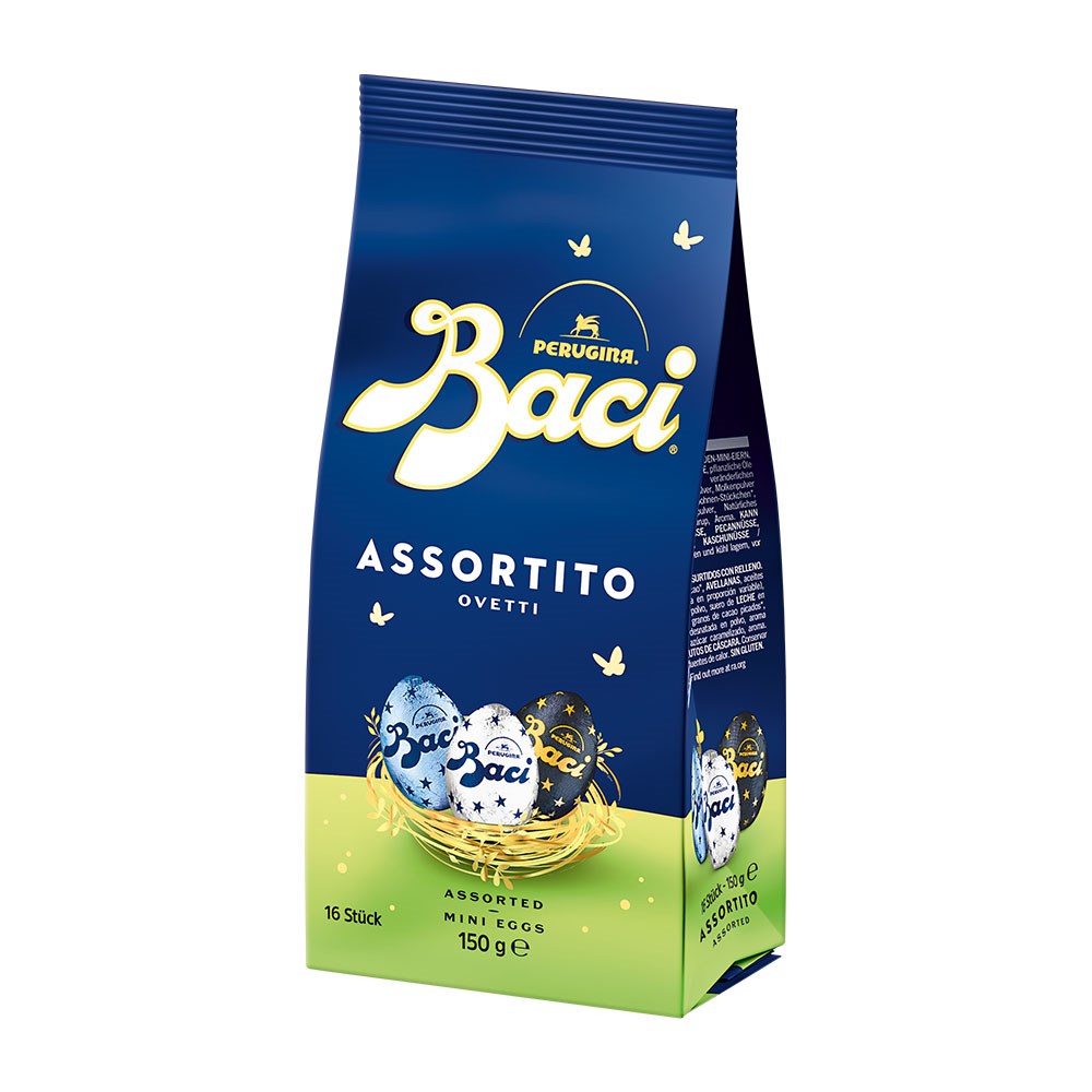 Celebrate Easter in great company with Baci® Mini Eggs Assorted 150g. This generous bag brings together Original Dark, Milk, and Extra Dark 70% mini eggs, each with a smooth creamy filling and a crunchy coating of chopped hazelnuts. A joyful gift that’s sure to delight every chocolate lover.