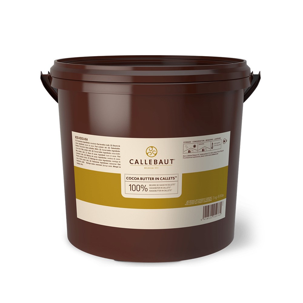 The key ingredient for every creative chocolate chef. Callebaut‘s cocoa butter is pressed from a premium selection of whole roasted cocoa beans. It is 100% pure, and has a neutral taste and colour. It is the wonderful base to make colour mixtures for spray gun application. It's also a great ingredient for adapting the fluidity of your chocolate. Adding between 1% and 8% of cocoa butter to the total volume of your chocolate makes it more runny, which is ideal for thin to very thin moulding and enrobing. It furthermore enhances the gloss and snap of your chocolate in moulded and enrobed confectionery applications.