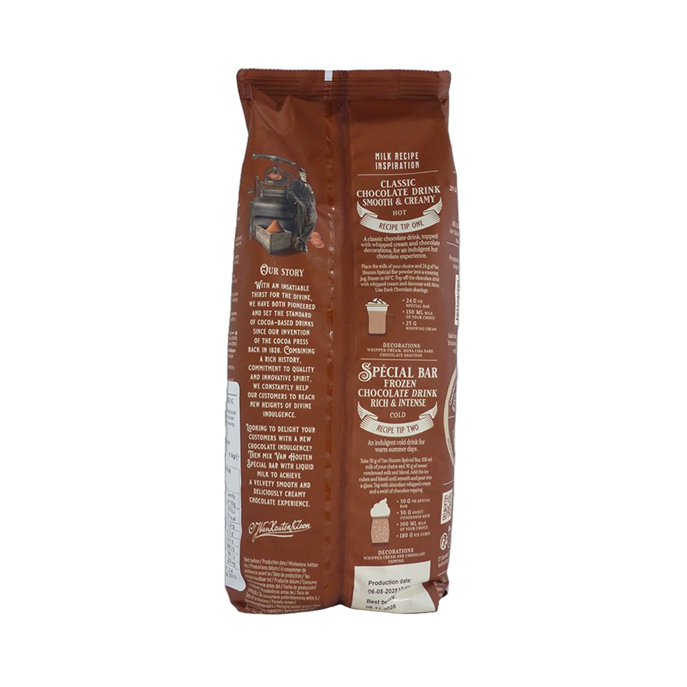 Looking to delight with a taste of chocolate paradise? Then mix Van Houten's Special Bar with milk to achieve a complete sensorial chocolate drink experience. It’s easy, it’s timesaving, and it’s oh so tasty. Real chocolate powder for a unique chocolate drink sensation, Van Houten Special Bar gives an authentic tasting chocolate drink for customers to enjoy.